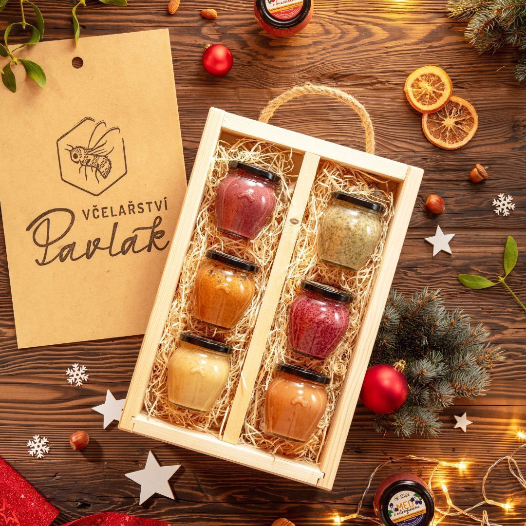 Zkombinujte přírodní sladkost medu s jedinečnými příchutěmi v naší luxusní dárkové sadě, která obsahuje šest různých ochucených medů dle vlastního výběru