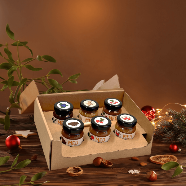 🎄 Vánoční dárková sada obsahuje 6 mini medů po 75 g 🎄